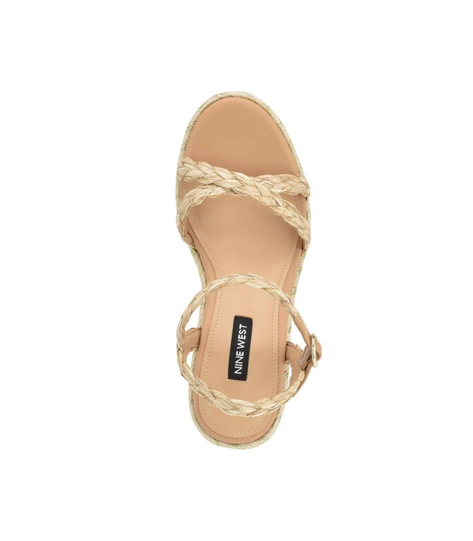 Alpargata Nine West con tacón alto y plataforma elaborada en textil color beige, punta redondeada, cinta entrelazada en empeine, pulsera en talón, entresuela tipo yute y suela sintética.