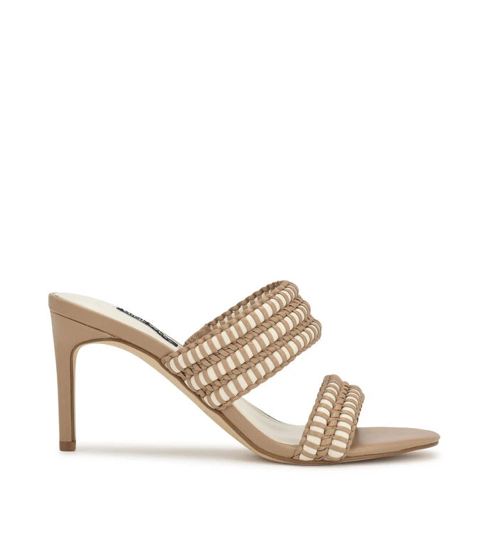 Zueco Nine West Pause elaborado de material sintético color beige, punta redondeada, tiras con diseño entrelazado en empeine, tacón alto de aguja y suela sintética.