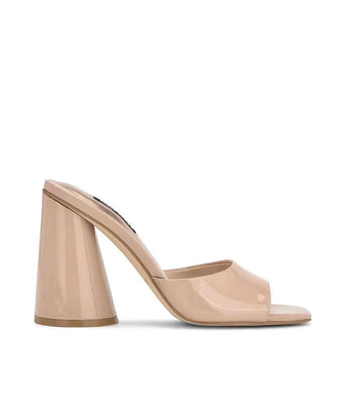 Zueco Nine West Nexcit elaborado de material sintético color rosa claro, punta cuadrada, banda en empeine, tacón alto redondo y suela sintética.